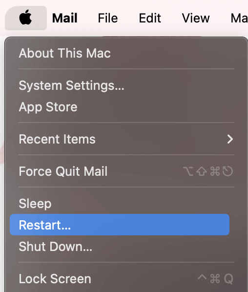 Napsauta Apple -valikon avullaKäynnistää uudelleen.