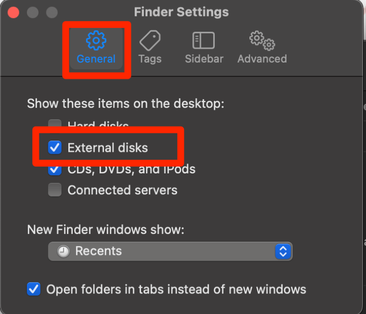 Usko tai älä, Finderissä on asetus, joka estää sinua näkemästä ulkoisia asemiasi näissä sovelluksissa. Se voidaan kytkeä pois päältä sekä työpöydälle että sivupalkkiisi Finder -sovelluksessa. Tämä tarkoittaa, että ulkoinen asemasi voidaan kytkeä oikein, mutta et vain näe sitä!
