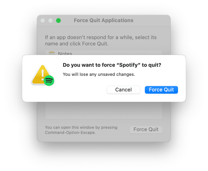 On todennäköistä, että Spotify on ollut avoinna jonkin aikaa. Kun asennat sen, se lisää itsensä kirjautumiskohteisiisi ja käynnistää siten automaattisesti, kun käynnistät Mac. Jos et ole käynnistänyt uudelleen jonkin aikaa etkä ole lopettanut Spotifya, se on ollut avoinna pitkään. Lopeta se ja avata uudelleen sen välimuistin ja väliaikaisten tiedostojen tyhjentämiseksi. Voit käyttää sen tekemistä Päätuoppimista pääasiassa. Yritä sitten käyttää sitä uudelleen.