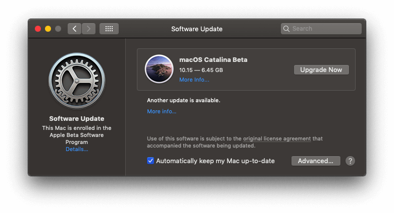 Asensin beetaTästä Macista. Vaihtoehtoisesti olisin voinut avata järjestelmäasetukset ja napsauttaaOhjelmistopäivitys.