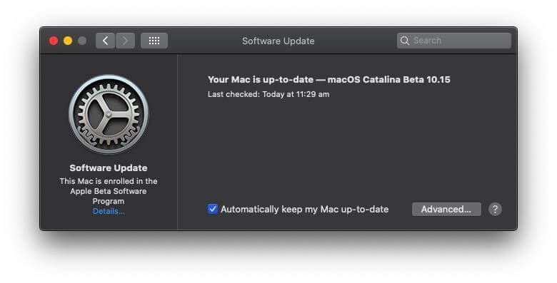 - Vaihda pienet snitch -asetukset, jotka antavat sille pääsyn öiseen päivitykseen. Tämä päivitys on yhteensopiva Catalinan kanssa.