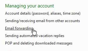 Vaihe 5: Napsauta sähköpostin edelleenlähetyslinkkiä allaTilisi hallintaikkunan osa.