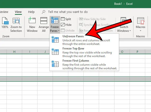 Vaihe 4: NapsautaJäädyttää ruudut-painikettaIkkuna-osio navigointinauhasta ja napsauta sittenJäädyttää ruudutvaihtoehto avattavasta valikosta.