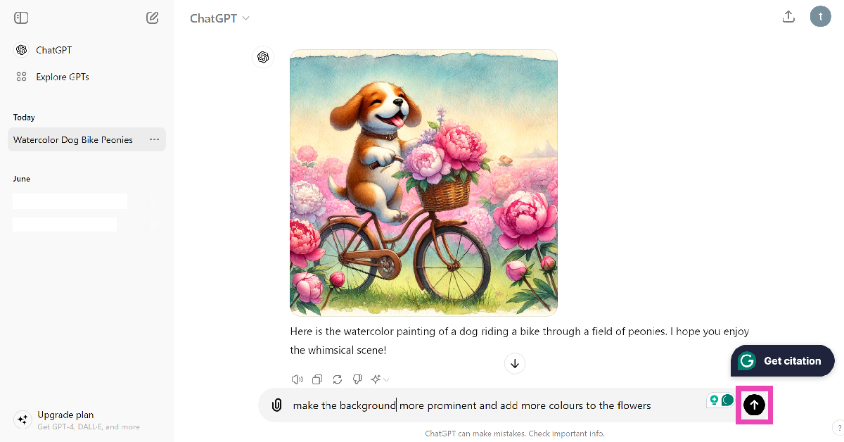 Vaihe 5:Jos sinulla on jatkokehotus kuvan parantamiseksi, kirjoita se tekstiruutuun ja painaLähettää.