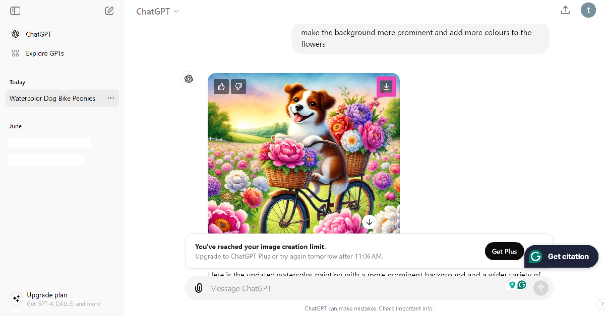 Vaihe 6:Lataa kuvan lataamalla kohdistin siihen ja painalatauspainike. Nyt voit tuottaa vainKaksi AI -kuvaaPäivälle Dall-E: n avulla.