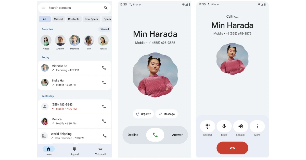 Google -puhelinsovelluksen uusi päivitys tuo uuden asettelun, lisäämällä kelluva valintakuvake alavalikkoon ja yhdistämällä suosikki yhteystiedot ja viimeisimmät puhelut -välilehdet. Saapuvan puhelun hyväksyminen vaatii nyt valintalaitteen liu'uttamista kuvaketta napauttamisen sijasta.