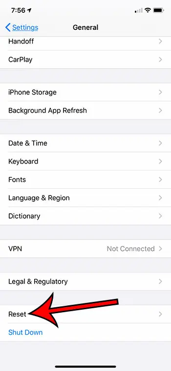 Vaihe 3: Vieritä valikon alaosaan ja valitseNollatavaihtoehto.