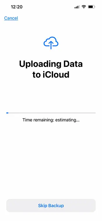 Sitten iPhone jatkaa tiedostojen varmuuskopiointia iCloudiin ja palauttaa laite tehdasasetuksiin.