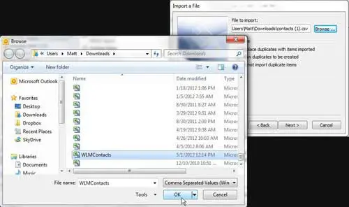 Kun haluat tuoda yhteystiedot Hotmailista Outlook 2010: een, tosiasiallisesti tekemäsi on viettää yhteystiedot Hotmail -tililtäsi tiedostoon, joka on yhteensopiva Outlook 2010: n kanssa, sitten vietämällä viety tiedosto Outlook -tiliisi.