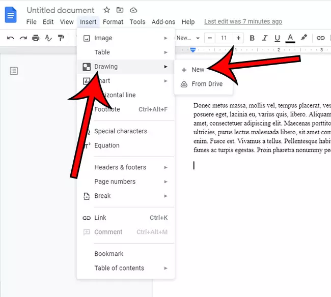 Tämä on todennäköisesti monimutkaisin tapa lisätä rivi Google -dokumentteihin, mutta se voi olla tehokas, ja se tarjoaa sinulle joitain lisävaihtoehtoja, koska se on teknisesti piirustus.