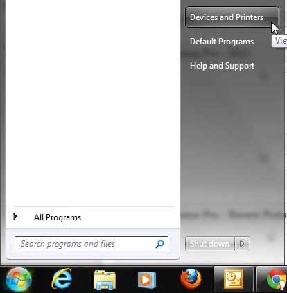 Vaihe 1: NapsautaAloita-painiketta näytön vasemmassa alakulmassa ja napsauta sittenLaitteet ja tulostimet.