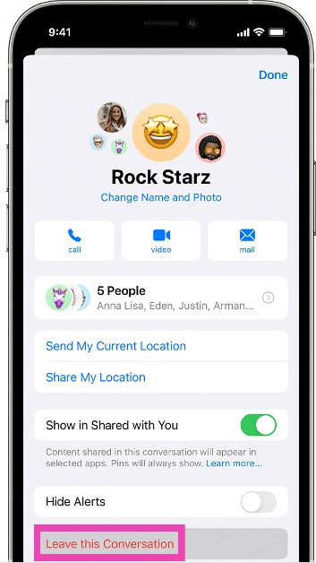 Poista ja estä ryhmän tekstikeskustelu iPhonessa