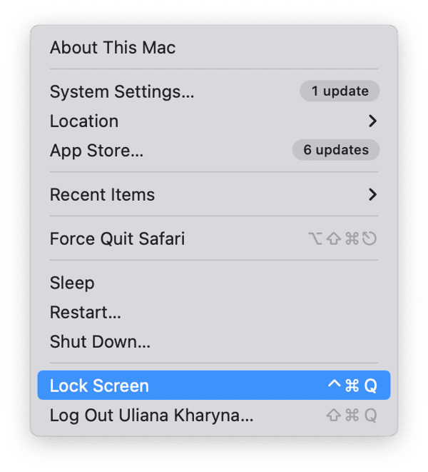 - Napsauta Omenavalikkoa ja valitse Lukitse näyttö; tai