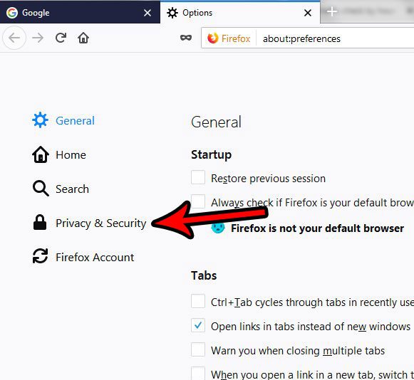 Vaihe 4: ValitseYksityisyys ja turvallisuusvälilehti ikkunan vasemmassa reunassa.