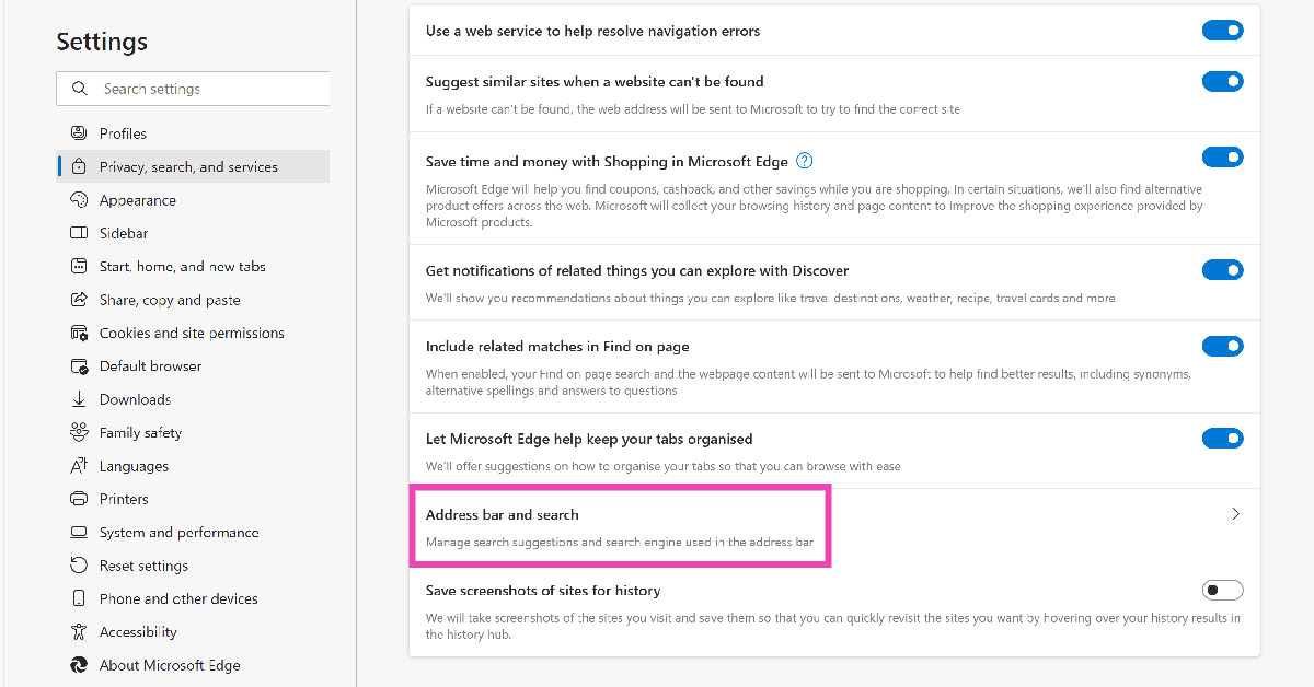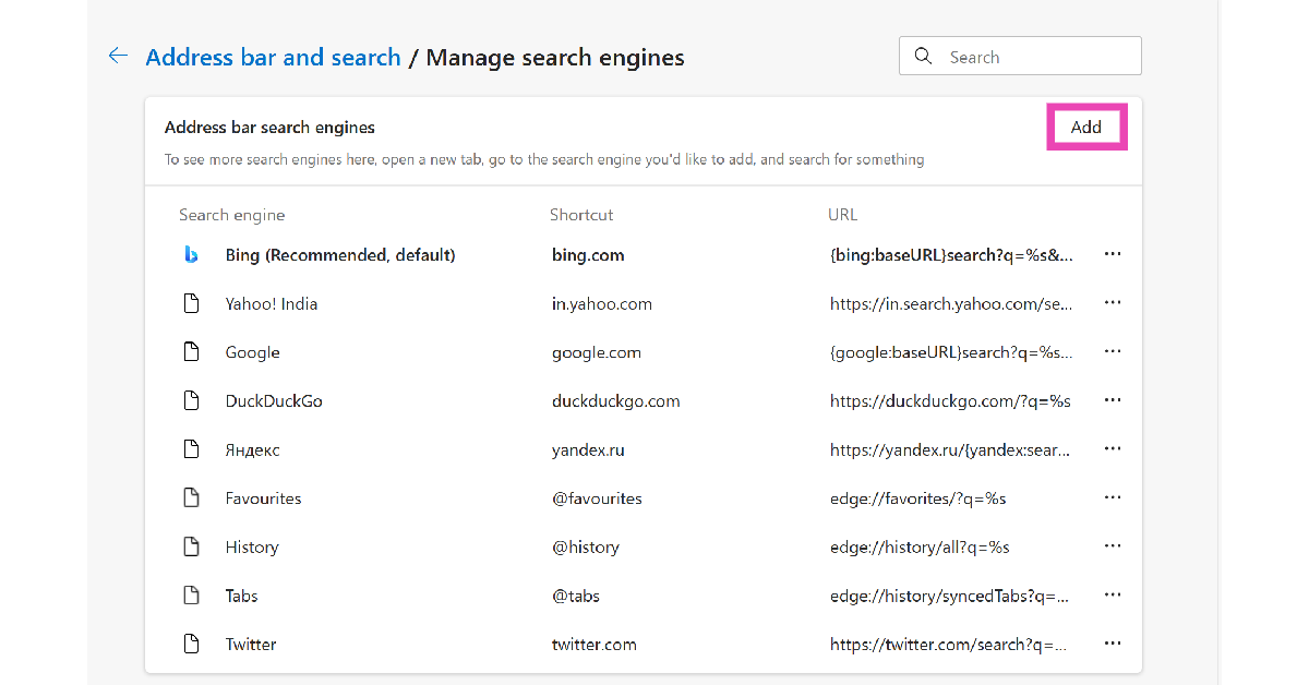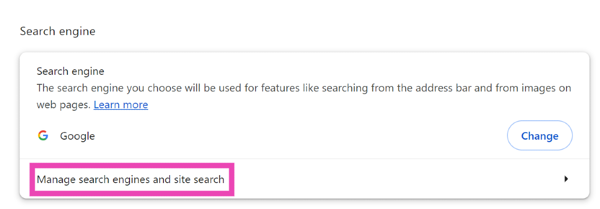 Vaihe 3:NapsauttaaHallitse hakukoneita ja sivustohakua.