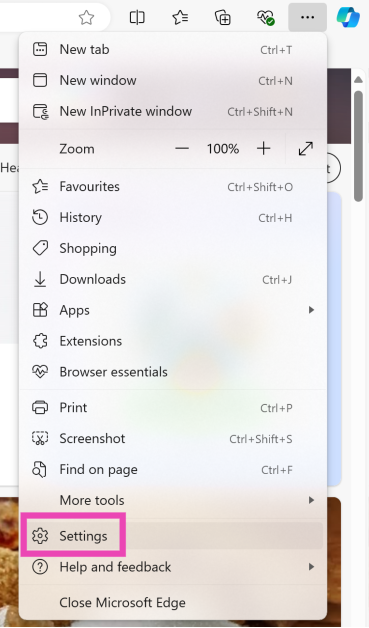 Vaihe 1: KäynnistääMicrosoft Edge tietokoneellasi ja siirry osoitteeseenAsetukset.