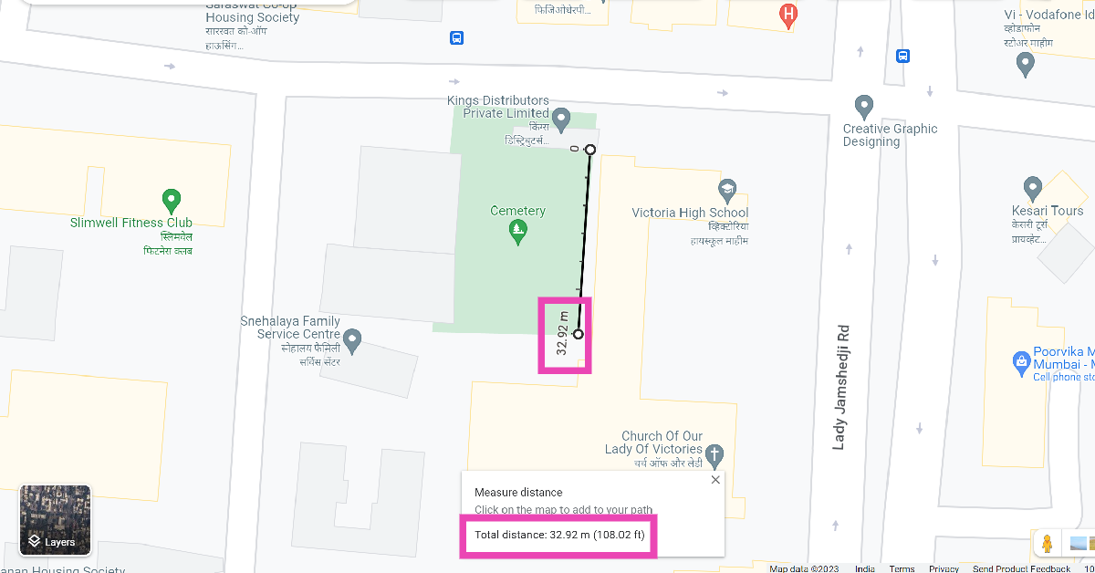 Vaihe 5:Google Maps näyttääetäisyysKahden pisteen välillä.