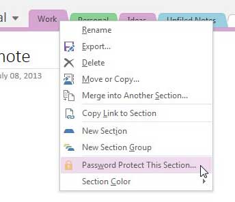 Kuinka lisätä salasanasuojaus muistikirjan osaan OneNote 2013