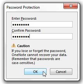 Jos tallennat arkaluontoisia tietoja johonkin muistikirjan osioista, joista olet huolissasi jonkun näkemästä, on hyvä idea lisätä salasanan suojausta.