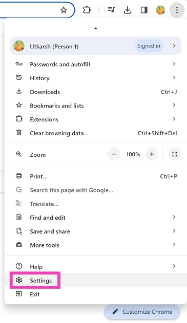 Vaihe 1: KäynnistäGoogle Chrometietokoneellasi ja meneAsetukset.