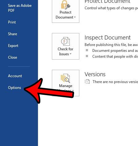 Vaihe 3: NapsautaVaihtoehdotWord 2013 -ikkunan vasemmassa sarakkeessa.