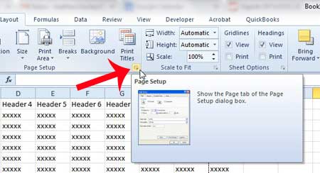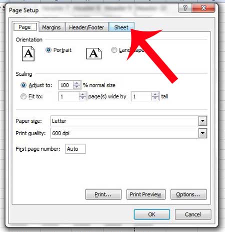 Rivi- ja sarakkeen otsikot, jotka tämä menetelmä tulostaa, ovat laskentataulukon ylä- ja vasemmalla puolella olevat numerot ja kirjaimet. Kun olet seurannut alla olevia vaiheita, voit napsauttaa tulosta esikatselu -painiketta nähdäksesi, kuinka laskentataulukko näyttää, kun se tulostetaan.