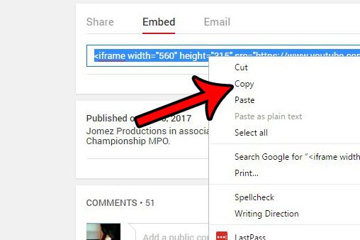 - Napsauta hiiren kakkospainikkeella ja kopioi koodia.
