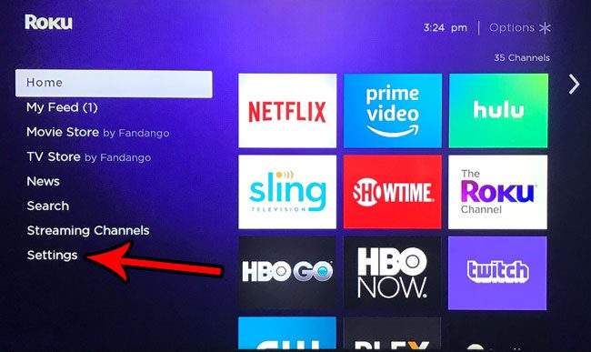 Vaihe 1: PainaKotiinPainike Roku -kaukosäätimellä ja valitse sittenAsetuksetVaihtoehto näytön vasemmalla puolella olevasta luettelosta.