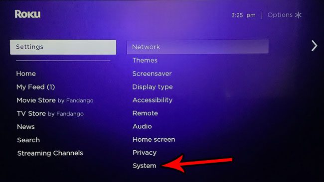 Vaikka olet ehkä aiemmin suorittanut tämän uudelleenkäynnistyksen yksinkertaisesti irrottamalla Roku ja kytkemällä se takaisin sisään, voit myös suorittaa uudelleenkäynnistyksen näytön valikon läpi.