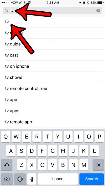 Vaihe 3: Kirjoita “TV” näytön yläosassa olevaan hakukenttään ja valitse sitten “TV” -hakutulos.