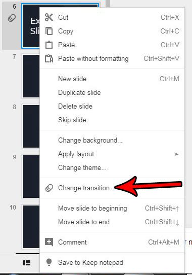 Tämän artikkelin vaiheet suoritettiin Google Chromen työpöytäversiossa. Tämä opas olettaa, että esityksessäsi on tällä hetkellä dia, joka sisältää siirtymisen ja että haluat poistaa sen. Tämä ei vaikuta muihin esityksessäsi tapahtuviin siirtymiin.