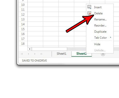 Vaihe 4: Napsauta hiiren kakkospainikkeella poistettavan laskentataulukko-välilehteä ja valitse sittenPoistaavaihtoehto.