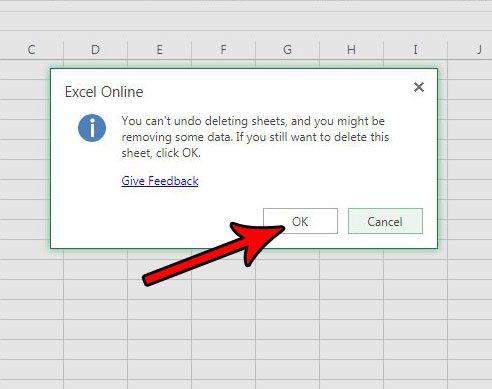 Vaihe 5: NapsautaHyväPainike vahvistaaksesi, että haluat poistaa tämän laskentataulukon välilehden ja kaikki sen tiedot.