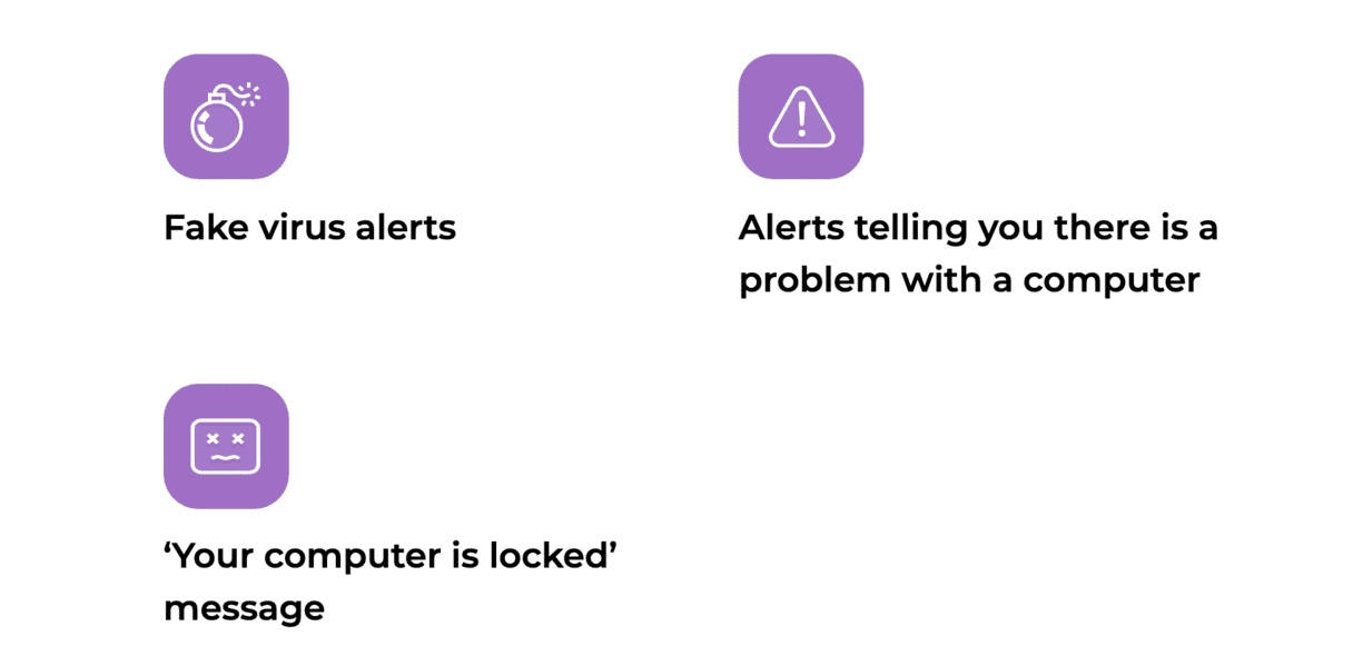 Kun olet käynyt tartunnan saaneessa verkkosivustossa tai lataat haitallisia ohjelmistoja, näet ponnahdusikkunan tai saat ilmoituksen. Ponnahdusikkuna tai ilmoitus olisi liian dramaattinen ja vaikea sulkea. Sinua pyydetään toimimaan välittömästi. Se yrittää huijata sinua uskomaan, että: