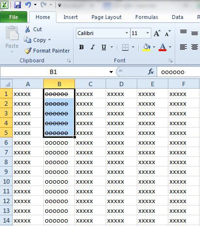 - Valitse solut, jotka sisältävät poistettavan yliviivatun tekstin.