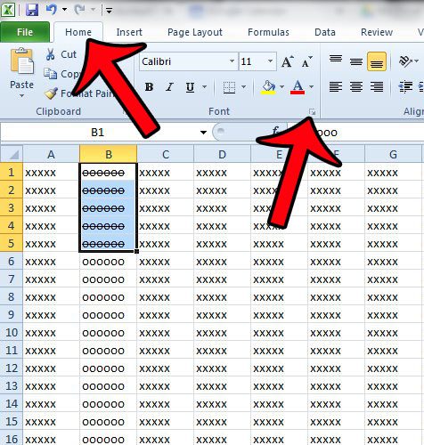 Menetelmä yliviivauksen lisäämiseksi tekstiin Excel 2010:ssä on hyvin samanlainen. Alla olevat vaiheet ohjaavat sinut sen läpi.