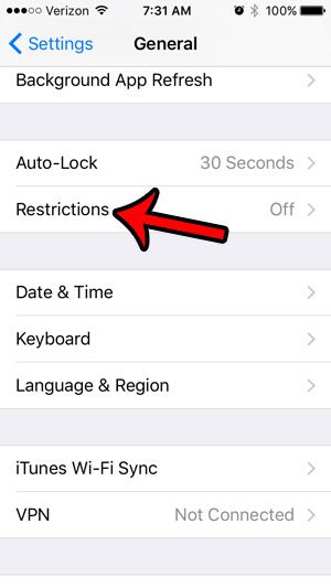 Vaihe 3: Vieritä alas ja napautaRajoituksetvaihtoehto.