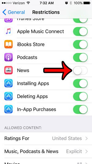 Valitettavasti emme tällä hetkellä pysty poistamaan uutisovellusta iPhoneistamme, mutta voimme piilottaa sen. Tämä suoritetaan rajoitusvalikossa.