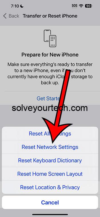 - Näet luettelon nollausvaihtoehdoista. Valitse 'Nollaa verkkoasetukset'.