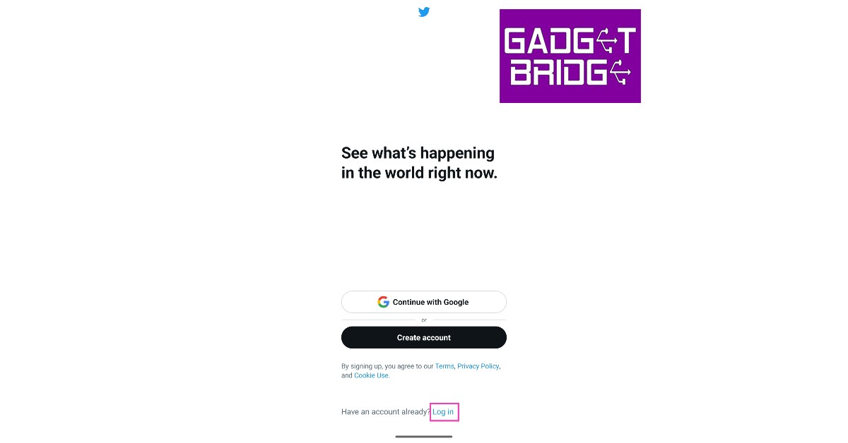 Vaihe 1:Käynnistä Twittersoveltaapuhelimessa ja napauta 'Kirjaudu sisään'.