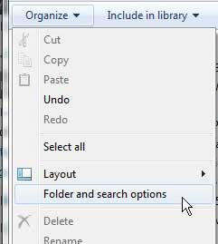 Vaihe 2: NapsautaJärjestääAvattava valikko ikkunan yläosassa olevan vaakasuoran palkin vasemmalla puolella ja napsauta sittenKansio ja hakuvaihtoehdot.