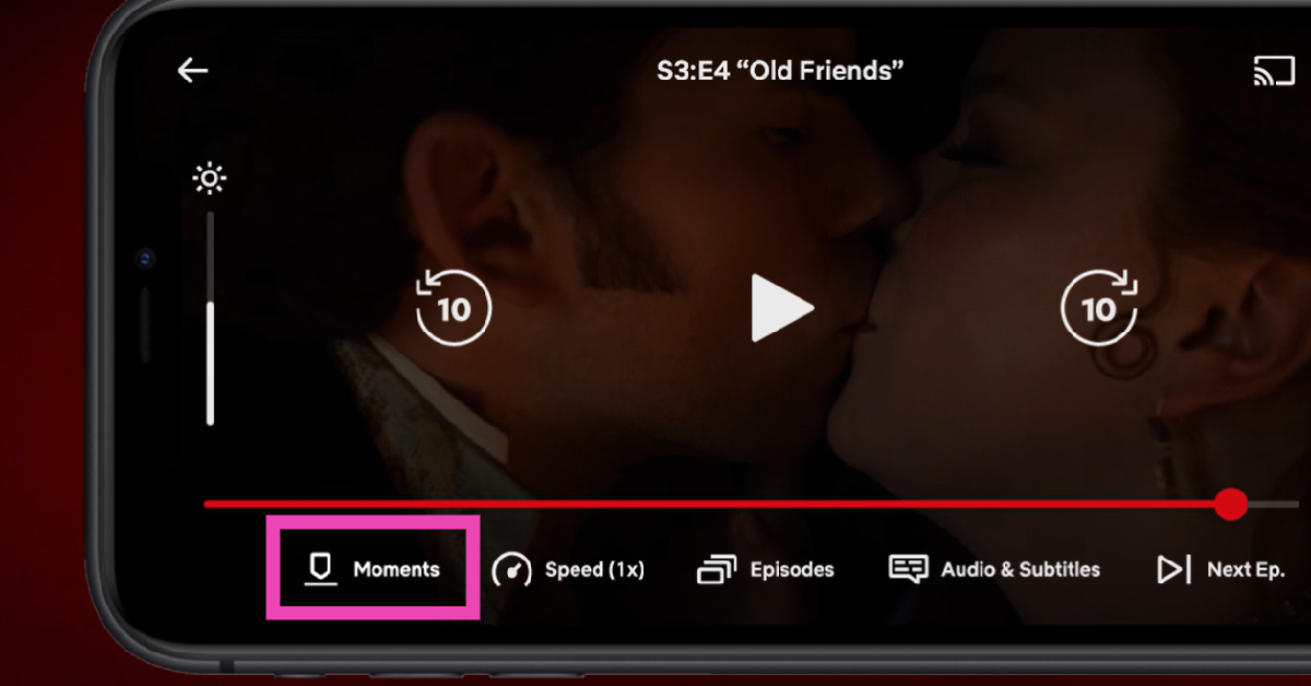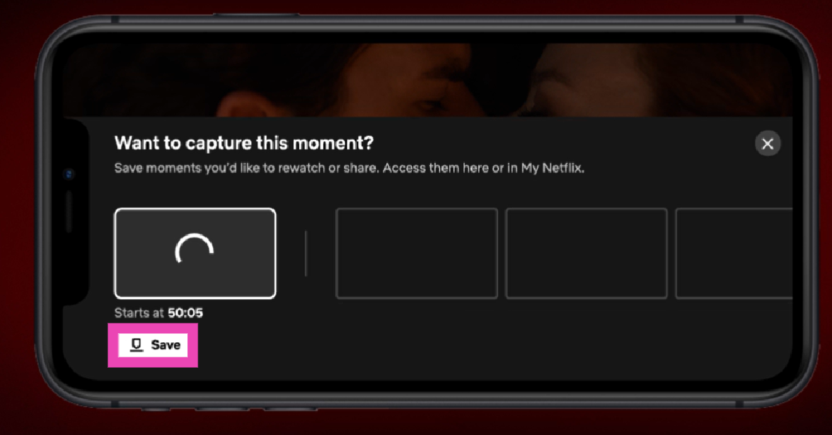 Netflixin uuden Moments-ominaisuuden avulla käyttäjät voivat leikata ja tallentaa kohtauksen mistä tahansa alustan nimikkeestä. Tämä vaihtoehto löytyy videosoittimen työkalupalkista.
