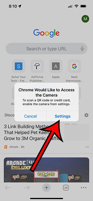 Sinun on otettava nämä käyttöoikeudet käyttöön vain ensimmäistä kertaa, ja jos et ole aiemmin ottanut käyttöön kameran käyttöoikeuksia iPhone Chrome -selaimelle.