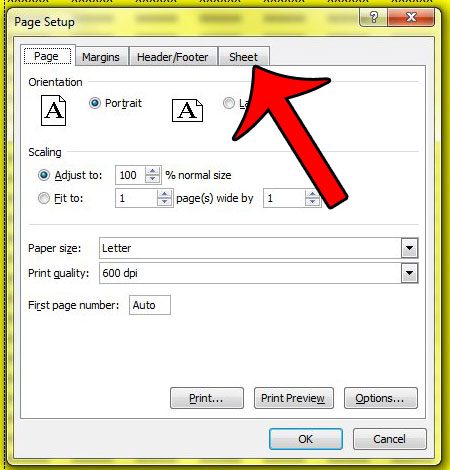 Vaihe 4: NapsautaArkkiTAB: t yläreunassaSivun asetuksetikkuna.