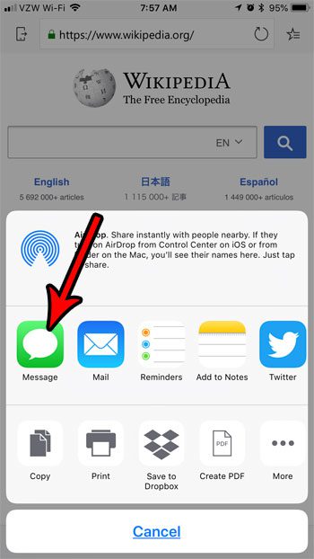 Nyt kun tiedät kuinka jakaa verkkosivun linkki iPhonen Microsoft Edge -sovellukseen, voit käyttää näitä vaiheita lähettääksesi verkkosivuja muita ihmisiä tekstin, sähköpostin tai muiden keinojen kautta.