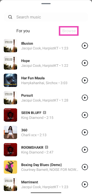Vaihe 5:Valitse trendikäs kappaleSinulleosa tai vaihdaSelataTAB SOVER SHAA -TEHON TEEDIT JA GENRIT.