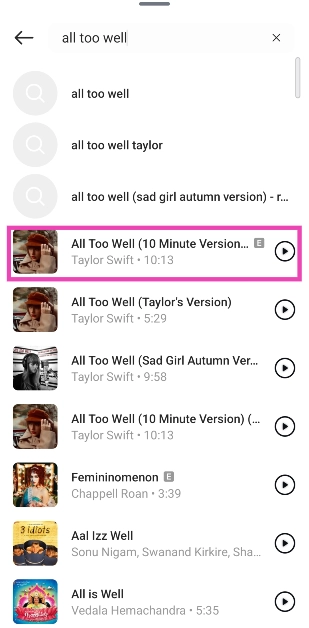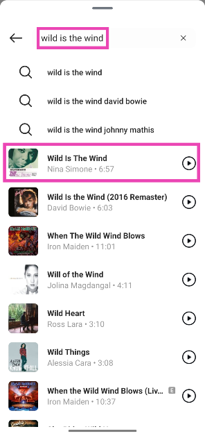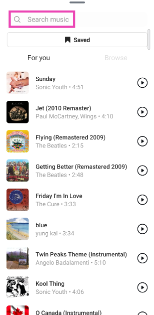 Vaihe 6:Valitse kappale kirjastosta tai käytähakupalkkiNäytön yläosassa etsiä valitsemasi kappaleen.