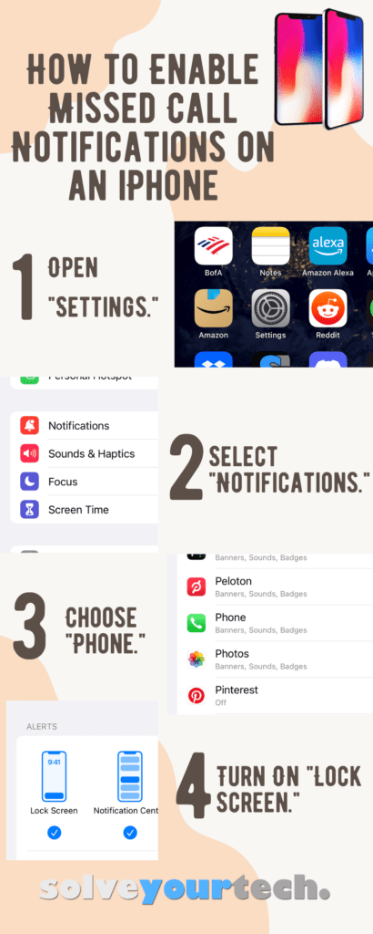 Voit muuttaa vastaamattomia puheluilmoituksia iPhone -asetukset menemälläAsetukset> Ilmoitukset> Puhelin>ja napauttamalla painiketta alleLukitusnäyttö.