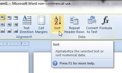 Kuinka lajittelet taulukon Word 2010: ssa?