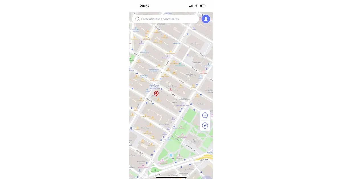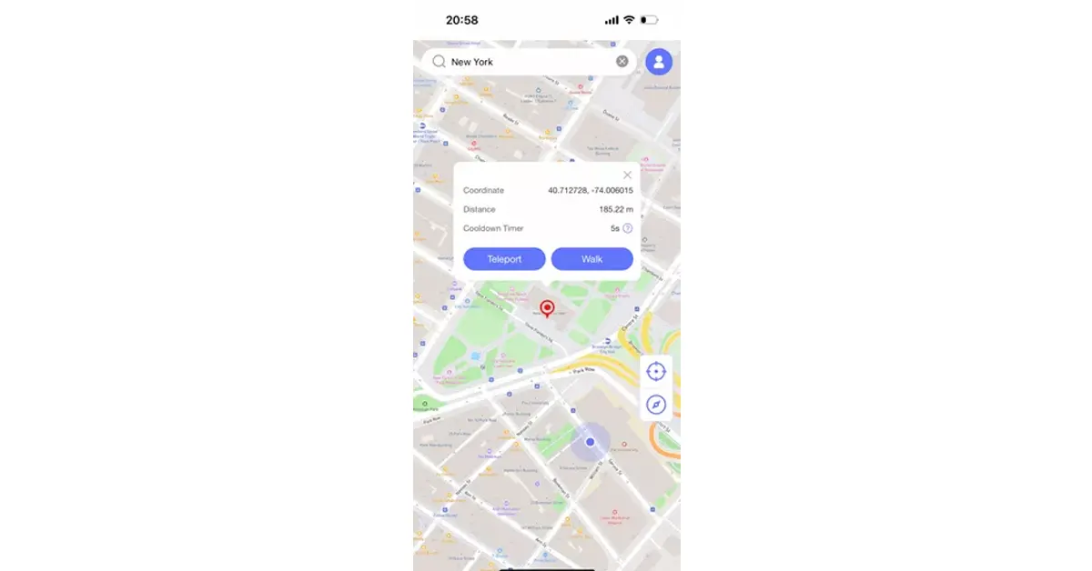Käytä sovelluksen sisäistä karttaa etsiäksesi sijainti tai syöttää koordinaatit. Voit teleportoida heti tai simuloida kävelyä useiden pisteiden välillä.